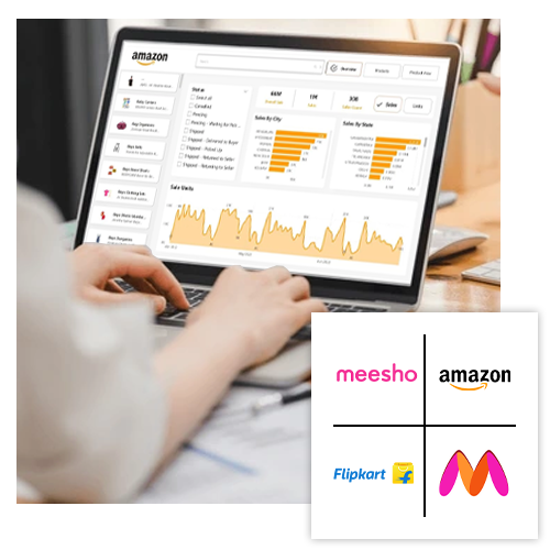 We help you get onboarded, go live, and scale — across Amazon, Flipkart, Myntra, Nykaa, Meesho & more. With our execution-led services, you get complete marketplace visibility, optimized operations, and higher conversions — all handled by one expert team