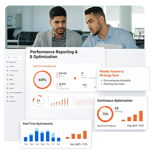 New creatives, sharper hooks, smarter funnels, better budget allocation — always backed by performance data.